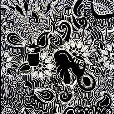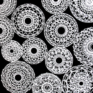 These striking pieces are instilled with pattern taking a twist on the classic black and white in a full inversion of white pen ink on a totally opaque background allowing for the designs to almost 'pop' off the page.